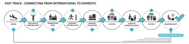 You will be greeted at the arrival gate and escorted through the airport to the luggage area, where you will be greeted by our porter, who will handle your bags. You will be rushed through security and escorted to a lounge (if available). You will be directed to the gate when the plane is ready for boarding.